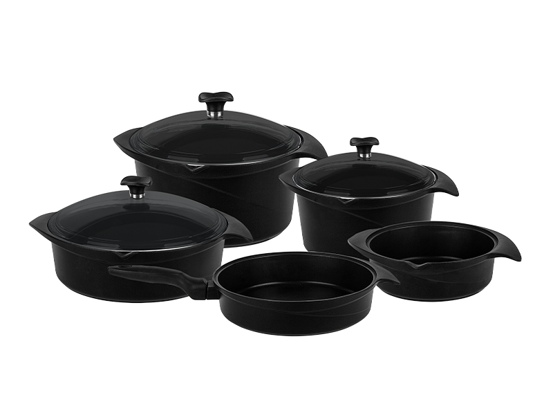 Aryıldız Flipper 9 Parça Granit Döküm Siyah Cam Tencere Seti